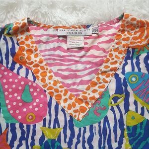 Gretchen Scott Designs Tunic Top Multicolor Fish Tropical Nautical Women’s XS
