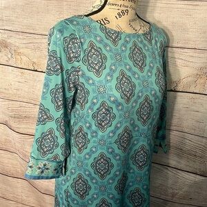 Gretchen Scott Dress Boat Neck 3/4 Sleeves Medallion Design Size Small