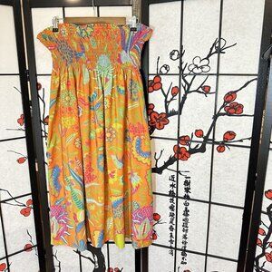 Gretchen Scott Dress OS Lightweight Cotton Printed Tunic Swim Coverup Tropical Orange Printed