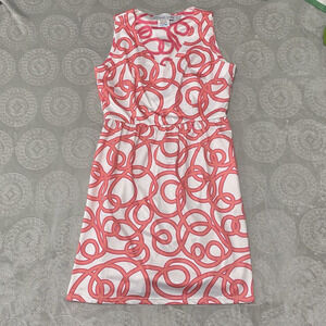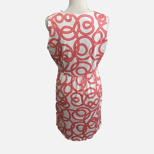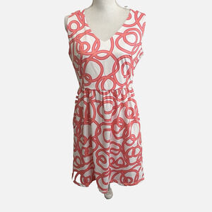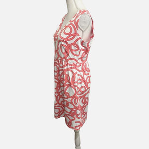 Gretchen Scott Dress Womens Sz M A-Line Sleeveless Pink White Geometric Print