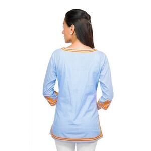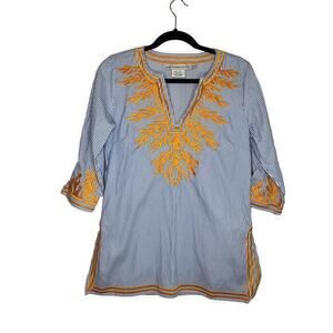 Gretchen Scott Embroidered Pinstripe Tunic The Reef in Blue/ Orange Size Small