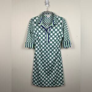 Gretchen Scott Everywhere Dress Geometric Print Green Blue Size Small EUC
