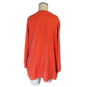 Gretchen Scott Faux Suede Waterfall Draped Open Cardigan-Orange- Sz S