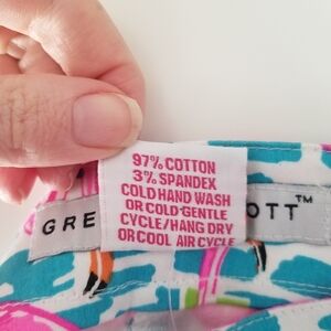 Gently used Gretchen Scott Flamingo Print Pants in a size Shrimp (XXS). Colorful all over print.