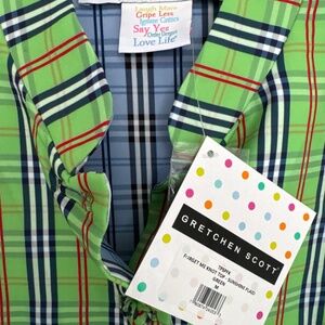 Gorgeous green “ Sunshine plaid” Gretchen Scott top. Size M.