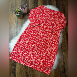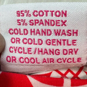 EUC. Minor discoloration under left armpit from spot cleaning. A few small white spots in red sections from removal