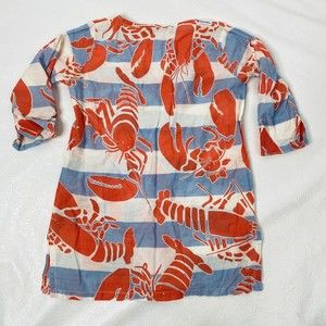 Gretchen Scott Girls Size 2/4 Muted Red and Blue Lobster Tunic Top Long Sleeve Dress or Beach Cover Up