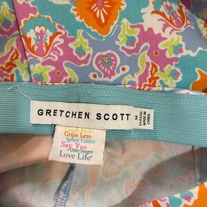 Gretchen Scott. Gripeless pull on pants. Multicolor abstract floral print. Ankle length. Stretchy. Excellent condition. No stains/tears. Size Medium.
