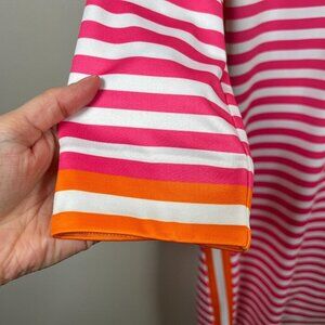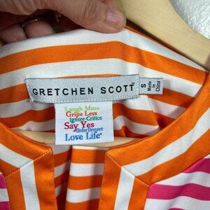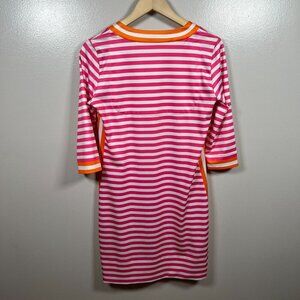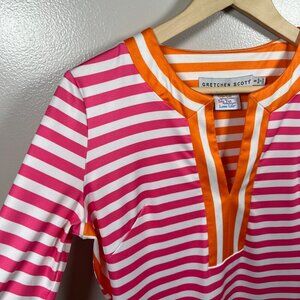 Gretchen Scott Hinckley Jersey Dress Size Small Pink Orange Split Neck Preppy