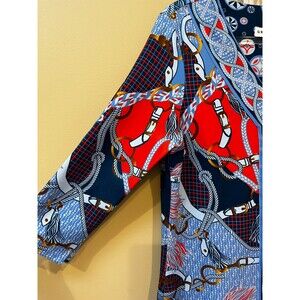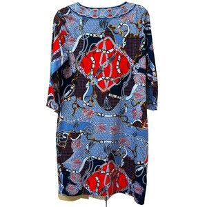 Gretchen Scott Jersey Bordertown Ditto Dress Imari Equestrian Scarf Nautical M Size Medium excellent condition with no holes, no stains, smoke free home pit to pit 20 inches top collar to bottom 36 inches.