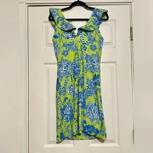 Gretchen Scott Jersey Fling Fantasy Ruffle Dress Pockets Lime Women’s XS