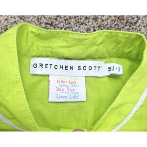 Gretchen Scott Lime Green White Piping Button Down Shirt Size Medium