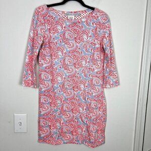 Gretchen Scott Paisley Print Shift Dress Size XS Red & Blue Cotton Blend