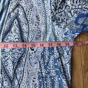 Gretchen Scott Paisley Tunic Top Size S Blue White Split Hem V-Neck