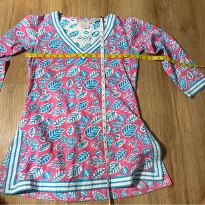 Gretchen Scott Pink Blue Print V Neck Cotton 3/4 Sleeve Tunic Size XS