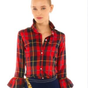Such a great take on a plaid shirt with the bell sleeves for a little extra flair and depth to the top. Pair with jeans or dress it up with a skirt. Size small, excellent condition.