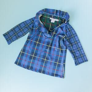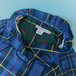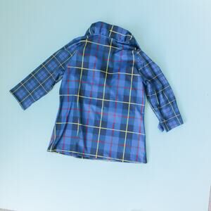 Gretchen Scott Ruff Neck Collar Plaidly Cooper Blue Blouse Size Medium