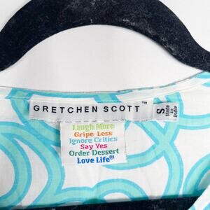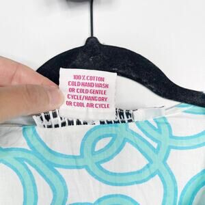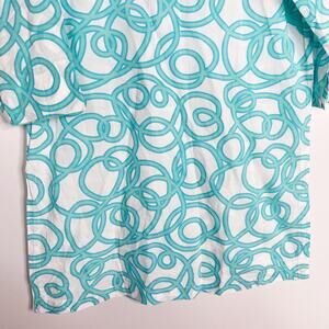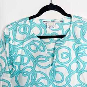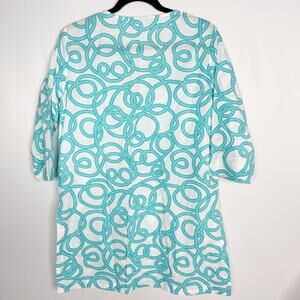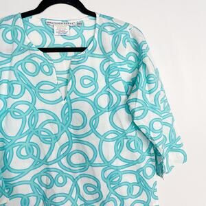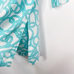 Gretchen Scott S Blue White Split V Neck Swirl Print Tunic Top Cotton Side Split