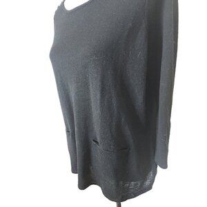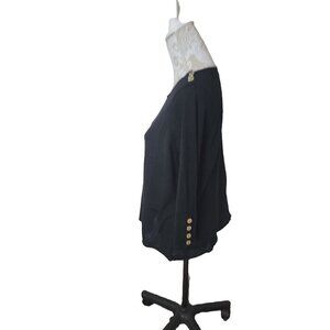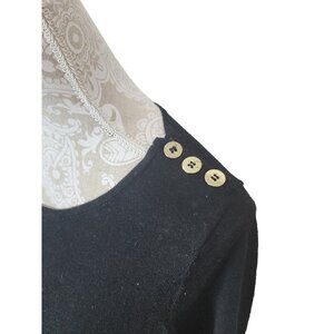 Gretchen Scott Sweater Black 3/4 Sleeve Pockets Gold Buttons Women's Medium