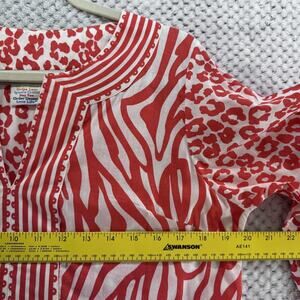 Gretchen Scott Top Womens S Orange Animal Print Tunic Pullover V-Neck 3/4 Sleeve