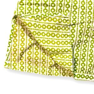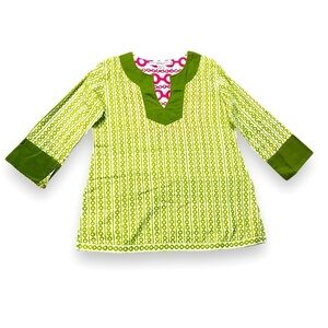 Gretchen Scott Tunic Split Neck Blouse Green White Geo Print Preppy Medium