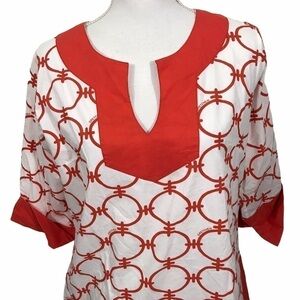 GRETCHEN SCOTT womens size M Orange white 3/4 sleeve cotton tunic top