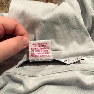 Gretchen Scott Womens Top Faux Suede Polo 3/4 Sleeve Hidden Button Blue Large JD