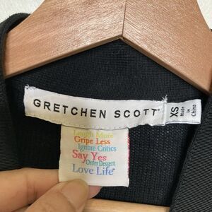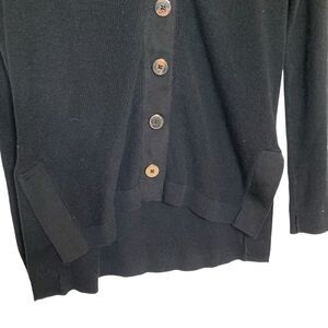 Gretchen Scott Womens XS Black Sweater Cardigan Gold Buttons Side Slits HiLo Hem