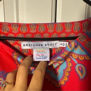 Gretchen Scott tunic, red floral blouse, paisley top, boho resort wear, vacation style, tropical print shirt, women’s size small, spring summer top, colorful blouse