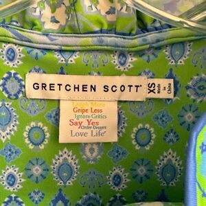 Gretchen Scott Ruffle Neck Dress in Magic Carpet Green Blue Floral Size XS