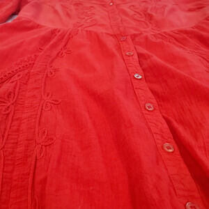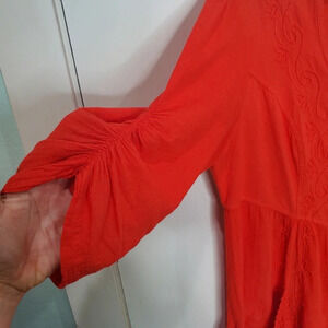 Gretty Fueger Boho Embroidered Crinkle Fire Red Dress Sz XL
