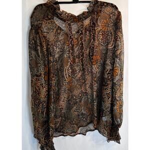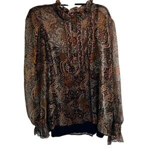 Gretty Zueger Floral Silk Blouse Set XL – Ruffle Neck Sheer Top + Liner