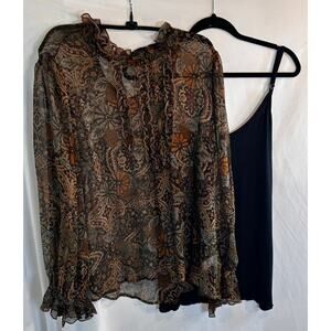 NWT Gretty Zueger two-piece set: sheer floral blouse with matching black camisole