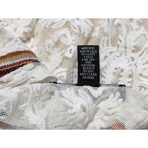 Gretty Zueger Tunic womens Sz S White Bohemian Southwest Lace Sheer colorful
