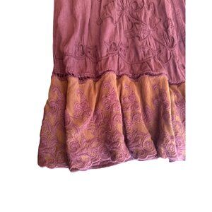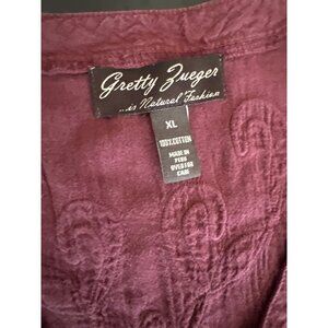 Gretty Zuger Boho-Style Embroidered Cotton Tunic Top Lace Trim XL Pink Purple