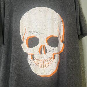 Grey 2XL Skull T shirt White and Orange Skull Emo Goth Halloween Retro Unisex