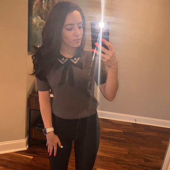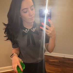 Gray Academia Sweater Short Sleeve w/ Lapels