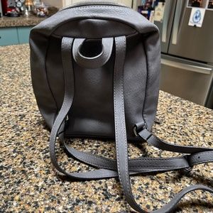 good condition, grey backpack with adjustable straps, one main pocket with two phone pockets and a small zipper pocket, small front pocket