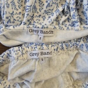 grey bandit set Elevate with this chic blue patterned jumpsuit. Perfect for any occasion, it offers comfort and elegance.