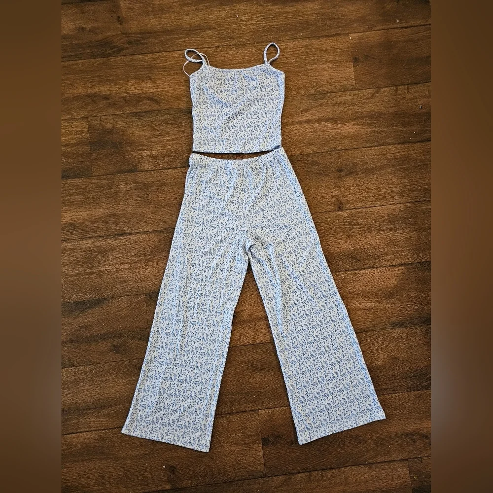 grey bandit set Elevate with this chic blue patterned jumpsuit. Perfect for any occasion, it offers comfort and elegance.