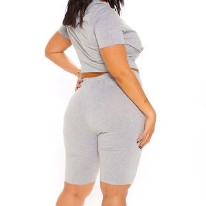 Grey Hoodie Biker Shorts Set * TOP & BOTTOM *