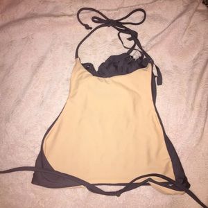 Grey bikini set. Halter top with tassels. Bottoms are full coverage. No padding. Never worn. Both pieces are size medium.