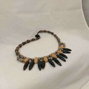 Get this gorgeous, organic Tagua Jewelry from Ecuador. Handmade with Tagua Nuts, that only grow in the rainfores of South America. Handcrafted by Ecuadorian Artisans. Black, Grey and Beige. 17" long.. Classic Bib Design