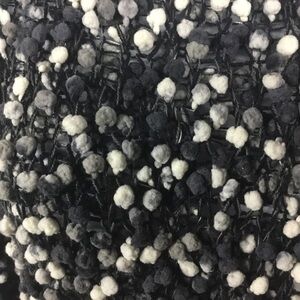Grey Black & White Wool Blend Long Sleeve Pompom Sweater. Stretchy fabric.