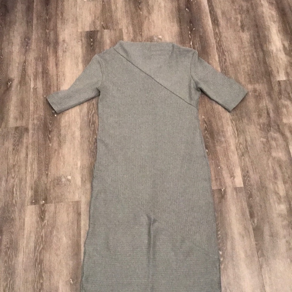 Grey Body-Con Ribbed Dress