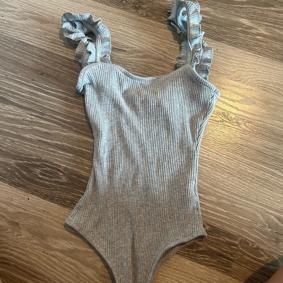 Grey Bodysuit Ruffle Strap