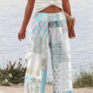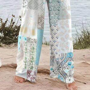 Grey Bohemian Women's Floral Ditsy Floral Patchwork High Waist Loose Pants