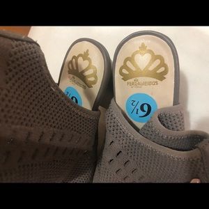 Knit light grey booties. Perfect for spring, fall and summer. Only worn once.