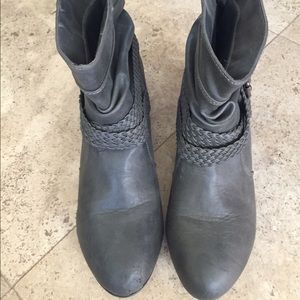 Adorable grey booties with braided belt size 8.5. In really good condition except for a tiny scuff on the right toe! Only worn once because they don't fit as I'm size 9.