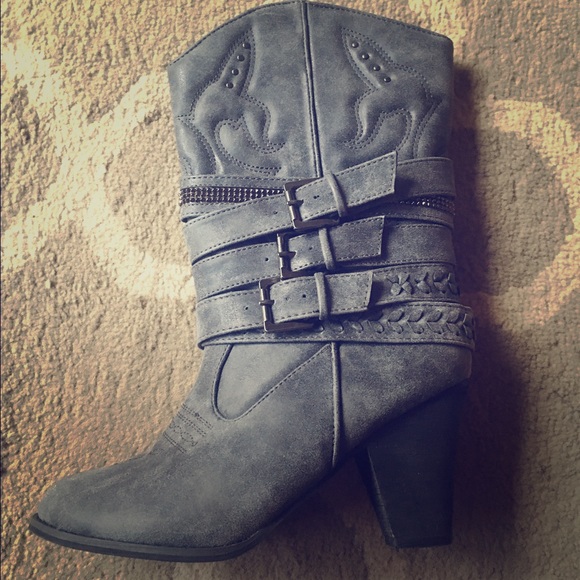 Detailed Dark Grey Boots. size 8.5. Barely worn once. Like New. Comes in Box